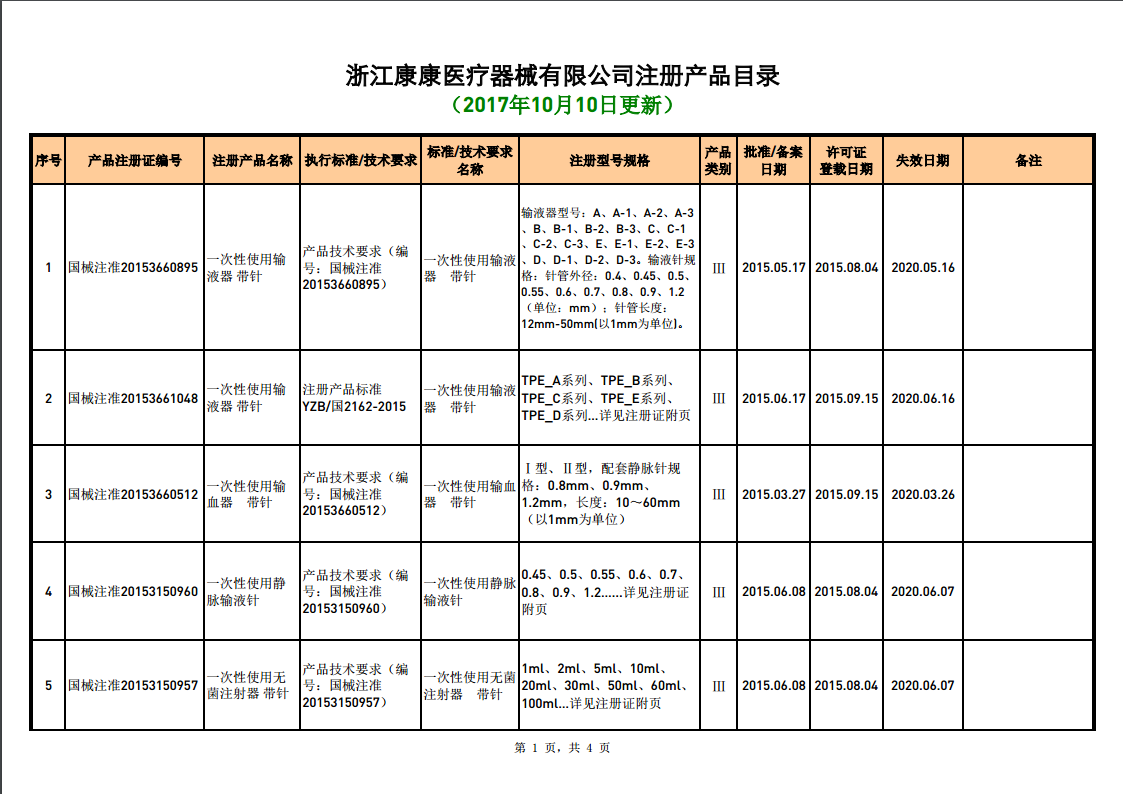 『康康』注冊(cè)產(chǎn)品目錄(2017年10月10日更新)
