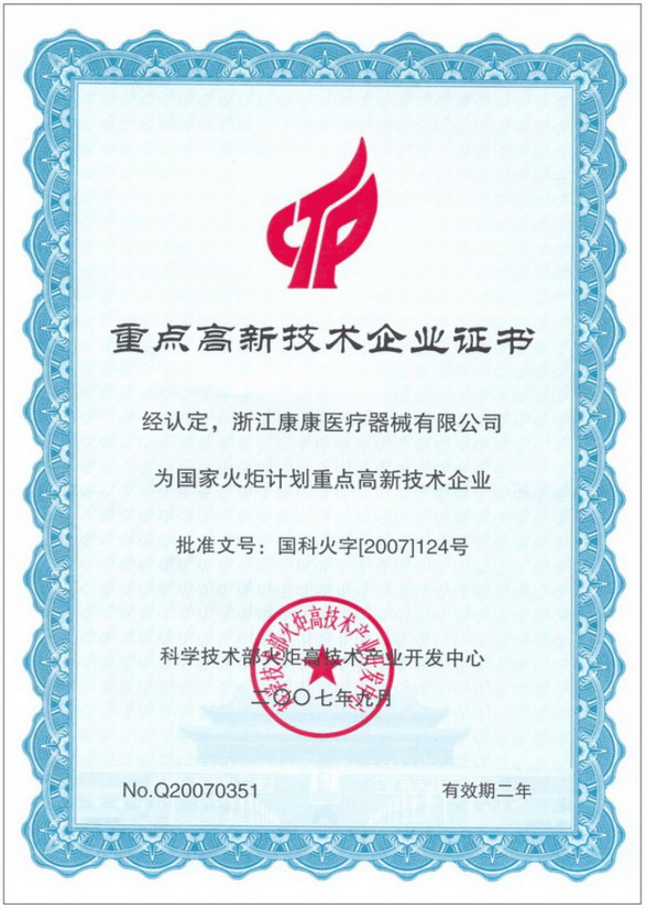 在浙江省同行業(yè)中,康康醫(yī)療器械第1個被認定為“國家火炬計劃重點高新技術企業(yè)”;第1個被認定為“高新技術企業(yè)”;第1個組建“省級醫(yī)療器械高新技術研發(fā)中心”;第1個獲得“省級專利工作示范企業(yè)”;第1個承擔“國家火炬計劃項目”研發(fā);第1個認定“浙江省名牌產(chǎn)品”;第1個認定“浙江省著名商標”;第1個認定“浙江省知名商號”等諸多榮譽。20多年與行業(yè)同齡的發(fā)展歷程,基本奠定了行業(yè)龍頭地位。公司至2020年的發(fā)展目標是建成國內最大的一次性無菌醫(yī)療器械生產(chǎn)基地。